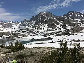 Importantly, there have been notable incidents, including accidental deaths, due to falls from steep cliffs (a misstep could be fatal in this class 4/5 terrain) and due to falling rocks, over the years, including 1993,[8] 2007 (involving an experienced NOLS leader),[9] 2015[10] and 2018.[11] Other incidents include a seriously injured backpacker being airlifted near SquareTop Mountain[12] in 2005,[13] and a fatal hiker incident (from an apparent accidental fall) in 2006 that involved state search and rescue.[14] The U.S. Forest Service does not offer updated aggregated records on the official number of fatalities in the Wind River Range.