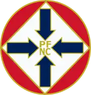 The PFNC organ was Le Pays Libre! ("The Free Country!"), with its editorial offices in Paris, at Champs-Élysées, 28.[16] It "distinguished itself with violent attacks on both the Muscovite [communist] ideal and the grand capitalist oligarchies."[17] The party logo showed four converging arrowheads over a diamond and a circle, with the French national colors.[18] Originally, it viewed itself as a youth organization, participating in the "Estates General of Youth" clubs alongside the Jeunesses Patriotes, the Ligue d'Action Universitaire Républicaine et Socialiste, and the Libre République des Jeunes.[19] The PFNC organization eventually formed a youth paramilitary force known as "French Guards" (Gardes Françaises).[18]