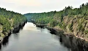 The French River (French: Rivière des Français, Ojibwe: Wemitigoj-Sibi) is a river in Central Ontario, Canada. It flows 110 kilometres (68 mi) from Lake Nipissing southwest to Georgian Bay.[1] The river largely follows the boundary between the Parry Sound District and the Sudbury District, and in most contexts is considered the dividing line between Northern and Southern Ontario. The French River was designated a Canadian Heritage River in 1986.
