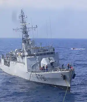 In 1987, she participated in Mission Corymbe off the Gulf of Guinea.