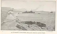 Démocratie joined Patrie, Justice, Vérité, République, and Suffren for a simulated attack on the port of Nice on 18 February. The ships of the 1st Squadron held training exercises off Sardinia and Algeria from 21 May to 4 June, followed by combined maneuvers with the 2nd Squadron from 7 to 18 June. An outbreak of typhoid among the crews of the battleships in early December forced the navy to confine them to Golfe-Juan to contain the fever. By 15 December, the outbreak had subsided. On 16 April 1911, Démocratie and the rest of the fleet escorted Vérité, which had aboard Fallières, the Naval Minister Théophile Delcassé, and Charles Dumont, the Minister of Public Works, Posts and Telegraphs, to Bizerte. They arrived two days later and held a fleet review that included two British battleships, two Italian battleships, and a Spanish cruiser on 19 April. The fleet returned to Toulon on 29 April, where Fallières doubled the crews' rations and suspended any punishments to thank the men for their performance. Démocratie and the rest of 1st Squadron and the armored cruisers Ernest Renan and Léon Gambetta went on a cruise in the western Mediterranean in May and June, visiting a number of ports including Cagliari, Bizerte, Bône, Philippeville, Algiers, and Bougie.[8]