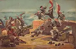 Tunisia had been a province of the Ottoman Empire since the Conquest of Tunis (1574), although with great autonomy under the authority of a Bey.[1] In 1770, Brigadier Rafélis de Broves bombarded the cities of Bizerte, Porto Farina and Monastir in retaliation for acts of piracy.[2] In the 19th century Tunisian commercial contacts with Europe were numerous, and there was a population of French, Italian and British expatriates in the country, that was represented by Consulates. France had also made a major loan to Tunisia in the mid-19th century.[3] The Tunisian government was weak, with an inefficient tax system that only brought it one-fifth of the tax collected. The economy was crippled with a series of droughts and the elimination of corsairs by Western fleets. Lastly, Tunisians had little control on foreign trade as old 16th century agreements with European powers limited custom taxes to 3%. As a result, its small industry was devastated by imports, especially in the area of textiles.[1]