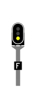 - Warning signals or speed limits (yellow) requiring the driver to slow the train and especially to be able to stop before the next stop signal;