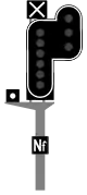 Slow 60 is a distant signal that indicates points in diverging position to be passed at a maximum speed of 60 km/h. It is always followed by a Slow 60 reminder. Slow 60 can be combined with the Flashing yellow signal. ![]() |