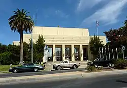 2. 1 2 Roger Bordeaux Taylor (September 14, 1993). "National Register of Historic Places Registration: Fresno Memorial Auditorium / Veterans Memorial Auditorium". National Park Service. Retrieved November 18, 2019. With accompanying 18 photos