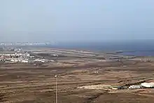 Fuerteventura Airport (IATA: FUE, ICAO: GCFV), also known as El Matorral Airport, is an airport serving the Spanish island of Fuerteventura. It is situated in El Matorral, 5 km (3 mi) southwest[2][3] of the capital city Puerto del Rosario. The airport has flight connections to over 80 destinations worldwide, and over 5.6 million passengers passed through it in 2019.[1]