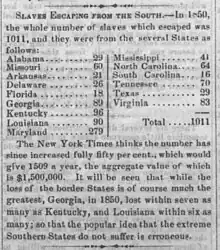 The Vicksburg Whig did not cite any sources for these claims about the number of fugitives from American slavery ("Slaves Escaping from the South", January 16, 1861)