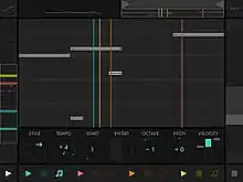 Fugue Machine is a "multi-playhead" sequencer where the user creates a melody sequence for four playheads to perform at different tempos, directions, and pitches.[2] The melody is programmed by two-finger panning, which allows the user to change the position of multiple notes, and three-finger panning which alters the velocity and length of MIDI notes.[3] The melody can last for up to eight measures.[4]