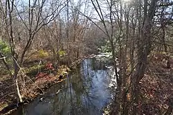 ![]() The furnace was located in this wooded area below Arnold Mills village | |