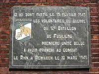 ![]() Plaque commemorating the 12th Fusilier Battalion which participated in the Battle of Remagen in March 1945 | |