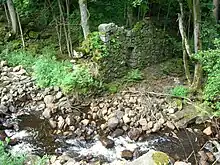 Throughout history, several watermills have existed at the stream. In 1844, some smaller mills were replaced by one larger mill. There are still ruins of this mill in the nature reserve. It was used to extract linseed oil, but also to grind grain. After two years, the mill was taken out of service because of the low pressure on the water. It was replaced by a new watermill at Hovgård in the western part of the current nature reserve. By damming up the stream and lead the water through a canal and a wooden tube, a drop height of 31.9 meters, one of the highest in southern Sweden, was created. The mill was used until the 1990s.