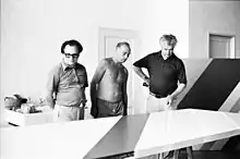 Born in Munich, Fruhtrunk studied architecture at the Technische Hochschule in Munich, which he gave up after two semesters to join the army as a volunteer in the fall of 1941. In 1945, Fruhtrunk began to study privately under the painter and printmaker William Straube in Neufrach, who was a student of Adolf Hölzel and Henri Matisse. In 1954 he received a scholarship from the state Baden-Württemberg and the French government and moved to Paris to work in the studios of Fernand Léger and Jean Arp. During the 1960s the painter mainly lived and worked in France. In 1961 he received the Prix Jean Arp in Cologne and in 1966 he was awarded the silver medal of the Prix d'Europe for Painting in Ostende. In 1963 he appeared in the film documentary School of Paris: (5 Artists at Work) by American filmmaker Warren Forma. In 1967, Fruhtrunk began teaching at the Academy of Fine Arts, Munich. It was Fruhtrunk who transformed the ideas of Constructivism to a colorful rhythmical pictorial world, by creating a dynamic language of form with vector-like diagonal lines arranged strictly rhythmically according to their alternating colors. His most conspicuous work was the plastic shopping bag he designed in the early 1970s for Aldi Nord; its use was discontinued in late 2018.[1]