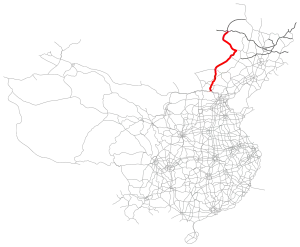 As of 2022, the Hailar-Xilinhot section is under planning, and the Xilinhot-Zhangjiakou section has been completed and opened. This opening section was originally called the Xizhang Expressway.[2]