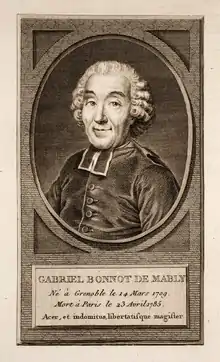Gabriel Bonnot de Mably (Grenoble, 14 March 1709 – 2 April 1785 in Paris), sometimes known as Abbé de Mably, was a French philosopher, historian, and writer, who for a short time served in the diplomatic corps. He was a popular 18th-century writer.[1]