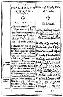 Gabriel Sionita was born Jibrayil al-Sahyuni Al Karami in Mount Lebanon, in the Maronite village of Ehden, to an old family of village notables and clerics, known today as the Karam family.[1] Maronite Patriarch al-Rizzi or Sergius Risius (1581-1597) sent Sionita and nine other Maronite children to Rome at the age of seven to study in the new Maronite College. In Rome, he learnt Latin and Arabic on top of his native Syriac, and acquired a slight knowledge of Hebrew. He studied theology, but only went into the priesthood later, in Paris, aged 45.