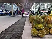 The Gadong Wet Market (Malay: Pasar Gadong) is one of the main marketplaces in the city selling fresh meat and produce. The wet market becomes a flower market on Friday and Sunday mornings (pasar bunga). The market is open from 6 am to 3 pm on Monday through Thursday, on Saturday, and on Sunday. On Friday, it is open from 6 am to noon and from 2 pm to 3 pm.[20]