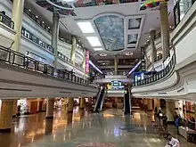The Mall is a one-stop development complex,[16] the mall has state-of-the-art architecture inspired by the merging of social and cultural exaltation and aims to recast the country's story to the world by developing the new consumer culture of Brunei's commerce.[17] On 9 July 2006, the Rizqun International Hotel and The Mall shopping center were officially opened by the Crown Prince Al-Muhtadee Billah. There are 378 staff members working at the hotel, 277 of whom are locals.[18] It is situated in the center of Gadong's commercial area. It is a three-story shopping mall with two spacious parking basements. After the Yayasan Sultan Haji Hassanal Bolkiah (YSHHB) Complex in Pusat Bandar, it is the biggest mall in the Gadong area. On the top floor, there is a cinema next to a sizable food court with vendors serving a variety of various cuisines. In addition to being next to the food court on the top floor, The Arcade Funland is an arcade.[19]
