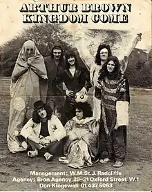 Following the collapse of The Crazy World of Arthur Brown, band leader Arthur Brown joined a handful of projects, namely Strangelands, Rustic Hinge, and the Puddletown Express. After the demise of the latter of these projects, Brown founded Kingdom Come in September 1970, after meeting bassist Dennis Taylor in Glastonbury. After asking Brown if he had any plans for future projects, Brown mentioned his idea of forming a band called Kingdom, in reference to King Arthur. Taylor suggested the name Kingdom Come, and the two decided then to form the band, with Taylor becoming the band's tour manager.[3]
