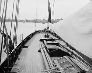 Galatea, a gaff cutter, was designed by John Beavor-Webb and built in 1885 for owner Lieutenant William Henn, R.N. of the Royal Northern Yacht Club. Henn named her after HMS Galatea, on which he had served from 1862 to 1866.[1]