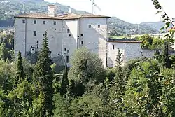 After the Albornoz's defeat his family was made Papal vicar in Rimini, Pesaro, Fano and Fossombrone.[1] In 1356 he took part in the crusade declared against the Ordelaffi of Forlì. In 1360 he was first made commander-in-chief by the Queen of Naples Joan I, but later he switched to the Republic of Florence and then again to the Byzantine Empire. In 1372 Pope Gregory XI confirmed Galeotto general commander of the Papal Army against Bernabò Visconti, whom he defeated at Montichiari, near Brescia, the following year.
