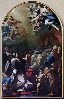 Among his works is an altarpiece of the Ecstasy of Santa Rita da Cascia (1734), painted for the church of San Giacomo Maggiore in Bologna.[3] He also painted a Carlo Borromeo and Luigi Gonzaga and a Vision of Saint Antony for the Oratory of Saint Anthony of Padua, located in Siena.[4]