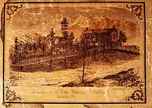 Drawing of Fairview from the illustrated border of large Wall Map of Chittenden Co, published in 1857 by H F Walling. Caption reads "Residence of Hon. Truman Galusha"