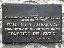 The plaque commemorating the match at the Estadio Azteca in Mexico City
