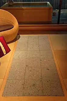 Body-sized stones, such as granite, are heated into the floor. Bathers lie clothed on the stones while their bodies gradually heat up.