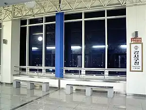 Gangseo-gu Office Station (Korean: 강서구청역; Hanja: 江西區廳驛) is a station of the Busan Metro Line 3 in Daejeo-dong, Gangseo District, Busan, South Korea.