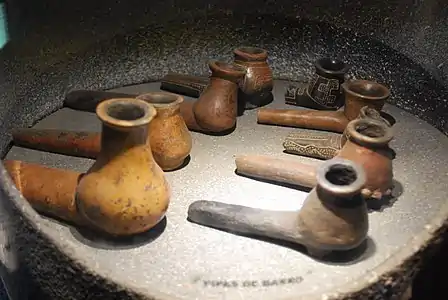 The museum's facade is noted for its simplicity, as it shows only the access gate framed in quarry. The interior is small with only 7 permanent exhibition rooms.[3] Of the exhibition rooms, the Loma San Gabriel Stage room is of particular significance, as it depicts types of housing and instruments (estimated to be around 3,000 years old) from the Loma San Gabriel culture, perhaps the forerunner of the contemporary Coras, Huichols, and Tepehuanes who still inhabit Durango.[3]
