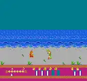 It is possible to die of starvation and/or hunger without the proper food/drink items. A meter for water and food are automatically deducted for every move that is made while travelling from landmark to landmark. These food and drink items are found inside people's houses for consumption. Houses appears as buildings representing pagodas. Certain landmarks must be entered in order to progress the game's storyline; these are represented in-game as a grey square with a drawbridge-like structure. An onslaught of enemies must be defeated in the side-scrolling segments of the game.