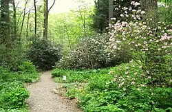 Garden in the Woods was founded in 1931, when Will C. Curtis purchased 30 acres (121,000 m2) in North Framingham, and began to create a botanical garden on the site. When Curtis died in 1965, the land and gardens were deeded to the New England Wild Flower Society.[1]