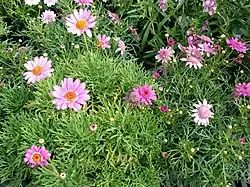 • Many of the GranDaisy series, with cultivar names such as 'Bonmax 9163' or 'Bonmax 14143', and selling names such as GranDaisy Pink or GranDaisy Deep Red[1]