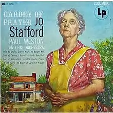 Garden of Prayer is a 1954 album of songs recorded by American singer Jo Stafford, accompanied by the orchestra of Paul Weston.[2] Each of the eight tracks on this album has a religious or inspirational theme.[3] It was released in 1954 by Columbia Records (CL 6286),[2] then reissued on CD in 2010 by Sinetone AMR, and appears under two titles - either Garden of Prayer or Beautiful Garden of Prayer.