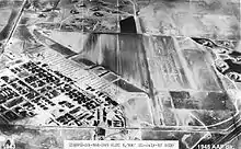 ![]() Aerial photo of the remains of Gardner AAF, 2006. The largest remaining recognizable element of the airfield is the 1,800' concrete and asphalt ramp area, which runs diagonally NW/SE in the photo. | |