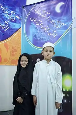 Gargee'an (Arabic: قرقيعان), sometimes spelled as Gerga'oon (Arabic: قرقاعون), is a semiannual[1] celebration, observed primarily in Eastern Arabia. It takes place on the 15th night of the Islamic month of Sha'ban for Shia Muslims and on the 15th night of Ramadan for all sects. It is celebrated by children dressing in traditional attire and going door-to-door to receive sweets and nuts from neighbours, as they sing traditional songs. It’s more of a tradition than a religious affiliation so both Sunni and Shia celebrate it. It is heavily celebrated in Kuwait by most people. The tradition has existed for hundreds of years, and is deeply rooted in some parts of the Gulf culture,[2] especially in Iraq, Kuwait, Bahrain and Saudi Arabia.[3]