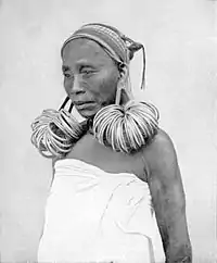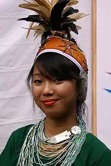 The Garo people are a Tibeto-Burmese ethnic group who live mostly in the Northeast Indian state of Meghalaya with relatively few people in neighboring Bangladesh.[4][5] Historically, the name Garo was used for a large number of different peoples living on the southern bank of Brahmaputra river, but now refers primarily to those who call themselves A•chik Mande (literally "hill people," from A•chik "bite soil" + mande "people") or simply A•chik or Mande and the name "Garo" is now being used by outsiders as an exonym.[6] They are the second-largest tribe in Meghalaya after the Khasi and comprise about a third of the local population.