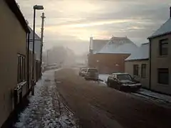From 1903, the village was served by Fockerby railway station. This had been built by the Goole and Marshland Light Railway Company, whose line left the main Doncaster to Goole line at Marshland Junction near Goole, and reached Fockerby by way of Reedness Junction, Eastoft and Luddington.[8] The line was taken over by the North Eastern Railway and the Lancashire and Yorkshire Railway in early 1903, and became the Axholme Joint Railway. They also took over the Isle of Axholme Light Railway, which provided a connection from Reedness Junction to Haxey Junction.[9] The station was initially named Garthorpe, but then became Fockerby.[10] Passenger services were withdrawn in 1933,[11] and the line closed to freight on 5 April 1965. Four days before closure, the North Axholme Secondary School at Crowle chartered a 4-car diesel multiple unit, and traversed the entire line, apart from the route south of Epworth which had been closed in 1956. The train was met at Fockerby by the headmistress and all of the pupils from Garthorpe County Primary School.[12] Incoming freight traffic on the line included manure and coal, while most outgoing traffic was agricultural produce, including potatoes[13] and tulips.
