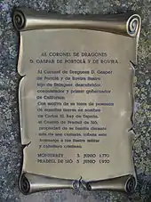 Plaque honoring Gaspar de Portolá at the Castle of Pradell de Sió, his family's ancestral home in Preixens.