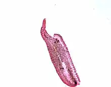 The Gastrocotylidae Price, 1943 was erected to separate Gastrocotyle and its allies.,[1] named and described by reference to a diagram of the clamp type alone[4] Sproston agreed on the importance of the difference in clamp structure in microcotylids, however, she reduced the Gastrocotylidae to sub-family status included in Microcotylidae Taschenberg, 1879.[5] Palombi did not recognize Sproston's subfamily Gastrocotylinae and placed it in the subfamily Microcotylinae Monticelli, 1892 then in his own family Arreptocotylidae Palombi, 1949.[6] This arrangement was refuted, and The Gastrocotylidae was brought back from the synonymy of Sproston in order to accommodate the subfamilies Gastrocotylinae Sproston, 1946 and Vallisiinae Price, 1943 and others which may later be adjudged similar.[4] Price's name was employed for the family as the latest was recognizable, and Gastrocotyle Van Beneden & Hesse, 1863 was designated the type genus.[4] Dawes and Chauhan also considered earlier Gastrocotylidaeas a valid and useful family.[7][8] The latest valid genus included within this family is Allogastrocotyle Nasir & Fuentes Zambrano, 1984, erected by Nasir & Fuentes Zambrano, 1984 to accommodate Allogastrocotyle bivaginalis Nasir & Fuentes Zambrano, 1984, from the gills of Trachurus lathami off Venezuela.[9]