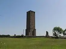 The Gazimestan monument was designed by Aleksandar Deroko, in the shape of a medieval tower, and built in 1953 under the authority of FPR Yugoslavia, 556 years after the Battle of Kosovo.