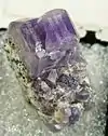 Aquamarine, topaz, tourmaline, apatite, sphene, morganite, and quartz | Image shows deep purple apatite from Shengus. | [3] |