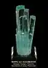 Aquamarine, emerald-coloured tourmaline, apatite, morganite, topaz, and quartz | The image shows aquamarine cluster from the area. | [3] |