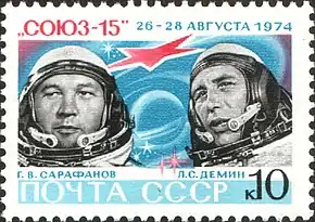 Gennady Vasiliyevich Sarafanov (Russian: Геннадий Васильевич Сарафанов; 1 January 1942 – 29 September 2005)[1] was a Soviet cosmonaut who flew on the Soyuz 15 spaceflight in 1974. This mission was intended to dock with the space station Salyut 3, but failed to do so after the docking system malfunctioned.