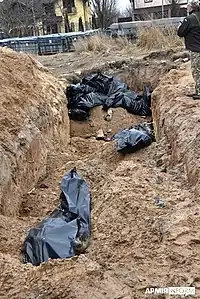 - ↑ Ian Gardner (2022). ""We've Got to Kill Them": Responses to Bucha on Russian Social Media Groups". Journal of Genocide Research (1): 1–8. doi:10.1080/14623528.2022.2074020. S2CID 248680376.