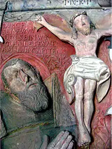 ![]() Painting of Georg Wolf kneeling before the cross (detail of his grave) | |