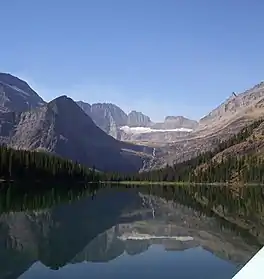 Grinnell made hunting trips to the St. Mary Lakes region of what is now Glacier National Park in 1885, 1887 and 1891 in the company of James Willard Schultz, the first professional guide in the region. During the 1885 visit, Grinnell and Schultz while traveling up the Swiftcurrent valley observed the glacier that now bears his name. Along with Schultz, Grinnell participated in the naming of many features in the Glacier region.[4] He was later influential in establishing Glacier National Park in 1910. He was also a member of the Edward Henry Harriman expedition of 1899, a two-month survey of the Alaskan coast by an elite group of scientists and artists.