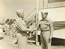 Officially, Good was appointed commanding officer of 5th Defense Battalion in November 1942 and remained on Funafuti until December 1943, when he was relieved by Lieutenant Colonel Willis E. Hicks. For his service on Funafuti, Good was decorated with the Legion of Merit with Combat "V".[1][8][9]