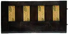 In the same year he decorated and furnished Miss Cranston's Buchanan Street tea room, originally designed by George Washington Browne where Walton continued to develop his stencilling technique having abandoned wallpaper in favour of this more versatile technique. A review by Joseph Gleeson White commented on the elegant simplicity of Walton’s design despite the involvement of Washington Brown, whose work was considered heavy-handed.[15] Walton also designed the furniture which was noted for its ‘sinuous verticality’ and accorded with the Glasgow Style aesthetic.[16]