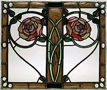 A copper and stained glass door panel designed by George Henry Walton for the luncheon room at Miss Cranston's Argyle Street Tea Rooms